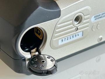 Pentax Espio 105G / IQZoom 105G 38-105mm f/4.5-11 in buone condizioni estetiche / lente nitida, senza graffi o funghi meccanica in buono stato, completamente funzionante Specifications: Brand: Pentax Model: Pentax Espio 105G Type: 35mm Focal length: 38-105mm SMC Pentax zoom lens Focusing range: 0.65m - infinity Max. aperture: f4.5-11 Shutter speeds: 1/360 sec. to 1 sec.; 1/2 sec. to 5 min. in bulb mode Film speeds: DX coded ISO 25-3200 Power: 1x CR123A Dimensions: 118.5 x 69 x 53.5mm Weight: 250g (without battery)