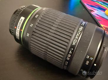Il teleobiettivo zoom Pentax K-Mount HD DA 55-300 mm F/4-5.8 ED resistente alle intemperie offre una gamma versatile di lunghezza focale di 55-300 mm, equivalente a 450 mm nel formato 35 mm. Con un'apertura massima di F/4-5.8, questo obiettivo è dotato di elementi ED per compensare l'aberrazione cromatica e rivestimento Pentax SP per proteggere gli elementi della lente esposti. Incorpora anche il sistema SDM per una messa a fuoco automatica fluida e silenziosa ed è resistente alle intemperie e alla polvere per una maggiore durata. L'obiettivo fornisce la stabilizzazione digitale dell'immagine ed è compatibile con le fotocamere Pentax K.