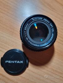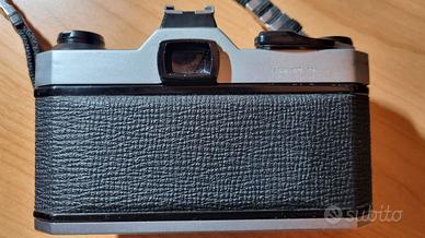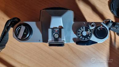 Macchina fotografica reflex Pentax K1000 con 3 obiettivi (28 mm Seimar Donnex, 50 mm Pentax, 135 mm Pentax). Flash Philips P18. Custodia originale sia per la fotocamera sia per due dei tre obiettivi.