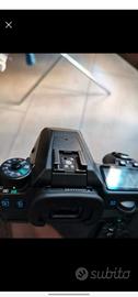 Vendo PENTAX K5 con 21.300 scatti. usata per usi amatoriali in famiglia. La fotocamera ha il tasto di sgancio che "si stacca" difetto noto della K5 (era stata già una volta mandata in assistenza in garanzia e riparata ma il. Problema si é ripresentato) motivo per cui ho scotchato il tasto diverse volte ed ho risolto il problema😁! Sempre Con protezione anche i due LCD (in foto é rotto il Superiore ma non l'ho sostituito Per Pigrizia) Regalo Battery grip con adattatore per batterie AA. batteria aggiuntiva e un paio di telecomandi remoti IR. Regalo anche cinghia professionale da attaccare a BG) più due Pentax (un'originale più altro in neoprene Pentax. Disponibile per invio di foto supplementari o per qualsiasi prova