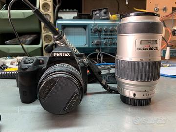 Fotocamera reflex con sensore APS-C (1.5x) da 14.6 megapixels prodotta dal 2009 al 2010. La gamma di sensibilità, inclusa estensione, è 100 - 6400 ISO e può scattare a raffica di 5.2 FPS x 15 RAW / 40 JPEG. Semi-pro (amatoriale) con obiettivo standard 18-55. Dotazione standard in dotazione + borsa (no memoria mSD) € 230,00. Con obiettivo PENTAX-FA SMC 80-320mm F.4,5-5,6 € 300,00