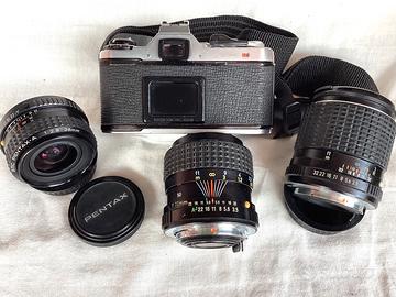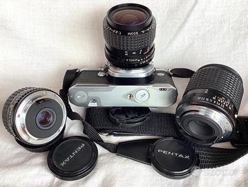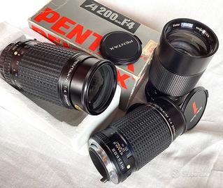 Corredo Pentax ME Super con tre lenti e winder,tutto funzionante ed in belle condizioni estetiche:scatto,esposimetro,guarnizioni,mirino pulito,tre lenti Pentax prive di difetti con tappi,Winder ME II,borsa in foto....(190€) PREZZO DEL TITOLO Separatamente: -Corpo ME Super con zoom Pentax A 35-70/3,5-4,5 tracolla,tappo,batterie...(100€) -Pentax A 28/2,8 tappi..(60€) -Pentax M 135/3,5 tappi...(40€) -Winder ME II ...(20€) Disponibili a parte teleobiettivi in perfette condizioni: -Pentax M 200/4 tappi...(40€) -Pentax A 200/4 tappi,imballo,scatola...(50€) -Vivitar K 200/3,5 tappi ...(50€)
