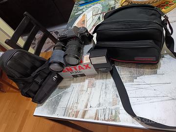 Reflex finitura titanio fotocamera a pellicola obiettivo 28/80/ obiettivo aggiuntivo 70/210 con borse e flash con tutti gli scatoli, vendo €. 140