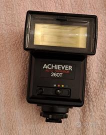 Macchina fotografica reflex per pellicola. Con teleobiettivo 28-82, leggera usura della vernice sulla ghiera flash Achevier, come da foto, con scatole originali. Perfettamente funzionante (priva di pile).