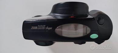 Macchina a rullino Pentax Zoom 105 super. perfettamente funzionante. ottima macchina tuttofare con tutte le opzioni base di una reflex. Dorso Data zoom fino a 105mm possibilità di effettuare macro modalità scatto multiplo modalità 2 esposizione display retroilluminato funziona con 2 batterie cr123 (non fornite)