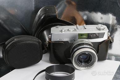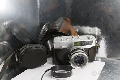 PERFETTAMENTE FUNZIONANTE Fotocamera “compatta” a pellicola 35mm (24x36 mm) Obiettivo Lente non intercambiabile 45mm 2,8-16 “amber coated” (4 elementi in 3 gruppi) Filtri 52mm Otturatore Petri MVE – velocità: B, 1s-1/500s; nell'obiettivo. Autoscatto Autoscatto integrato. Regolazione ASA 10-400 Esposimetro ATL (Around the lens) con corona circolare al selenio intorno all'obiettivo accoppiato con le regolazioni tempo, diaframma ed ASA; ago a 0 centrale visibile nel mirino e sul lato superiore della fotocamera. Accessori, flash : Slitta porta accessori e flash con conttatto sull'obiettivo; selettore MX: X (elettronici), M (bulb flash); tutti i tempi sincronizzati su x (con flasch elettronici). Messa a fuoco ad elicoide da 2,75 m ad infinito; controllo della messa a fuoco a sdoppiamento di immagine nel mirino. Mirino Galileiano con controllo della messa a fuoco con immagine sdoppiata, cornice per errore di parallasse e ago esposimetro a zero centrale visibile sulla destra Avanzamento pellicola manuale con leva di avanzamento (180°) e contestuale funzione di ricarica otturatore Riavvolgimento pelllicola manuale con manettino e pulsante di sblocco sul lato inferiore fotocamera.