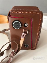Custodia rigida in cuoio rosso interno, ben conservata e con cinghia originale.
