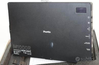 PHOTTIX M1000R RGB Panel LED Light Phottix M1000R un pannello LED RGB potente e portatile per la fotografia e il videomaking. Incorpora la pi recente tecnologia LED (Flicker-free) che lo rendono estremamente efficiente e durevole eportatile. Caratteristiche principali: * Eccellente resa dei colori: CRI 96+ (TLCI 98+) * LED a lunga longevit e a basso surriscaldamento * Batteria da 20.000 mAh incorporata * Temperatura colore e luminosit regolabile * Regolazione totale della tonalit (0-360) e saturazione del colore * 21 effetti scenografici preimpostati * Utilizzabile come power bank * dimensioni:280 x 180 x 13.7mm * peso:992g