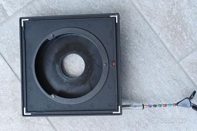 Piastra Sinar originale articolo 442.21 compatibile con otturatori Copal e Compur su quasi tutti gli obiettivi Rodenstock e Schneider, si veda tabella Sinar per valutare la compatibilità. Attualmente il foro è da 34,6 (copal 0 e Compur 0) essendo di plastica è facilmente allargabile, la piastra è invece in metallo. Funzionamento perfetto, buone condizioni estetiche.