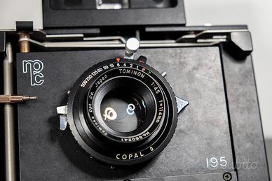 La NPC 195 è una rivisitazione della vecchia Polaroid 195. La NPC è riuscita a procurarsi lo stesso obiettivo della Polaroid 195 (Tominon 114 mm f/4,5) in un otturatore Copal 0 e un'identica unità telemetro-visore, ma ha costruito la sua fotocamera per utilizzare le pellicole Polaroid standard da un quarto di lastra (3x4“) e il formato amatoriale più piccolo, che era (credo) 3x3”. Vale la pena di elencarle per mostrare cosa abbiamo perso: Pro 100, 107C, 108 Polacolor ER, 611 B+W, 612 B+W ad altissima velocità (ISO 20.000!) ad alto contrasto, 664 B+W, 665 pos/neg, 667 high-speed coaterless, 668 Polacolor 2 e 669 Polacolor ER.