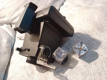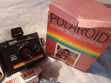 Vendo come da foto macchina fotografica Polaroid Appareil Land Camera Instant 20. Scatola, istruzioni, carta di registrazione apparecchio (non compilata) e libretto presenti. Doppio cubo-flash Philips PFC 4 12 photos made in Great Britain presente in scatola originale. Le scatole della macchina fotografica e del flash presentano difetti (visibili in foto) legati all'usura e al tempo. Macchina in ottime condizioni, cinturino perfetto, tenuta con estrema cura.