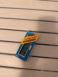 Fotocamera istantanea anni ‘70. Dotata di custodia e flash bar Sylvania.