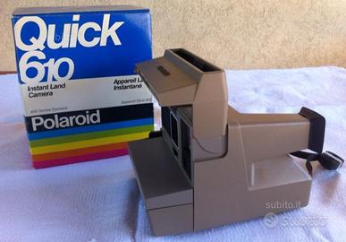 Macchina fotografica Polaroid Quick610 instant land funzionante ma con una piccola rottura sulla parte laterale (visibile in foto). Ha libretto di istruzioni e scatola originali