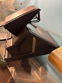 Costruita in diverse versioni dal 1972 al 1981, la Polaroid SX-70 è una SLR (single lens reflex) dal design unico. Progettata da Henry Dreyfuss, utilizza pellicole della serie SX-70 Land da cui ha, appunto, preso il nome in quanto primo modello creato per utilizzarle. Totalmente pieghevole, una volta chiusa può essere portata nella tasca interna di una giacca o di un cappotto. Oggetto di ìculto per designer e fotografi . Questa è la land camera model 2 quindi la prima versione anni 70. Essendo ricoperta di pelle, soprattutto sotto, come da foto, si può vedere che ha delle usure. La polaroid non è stata testata