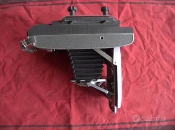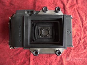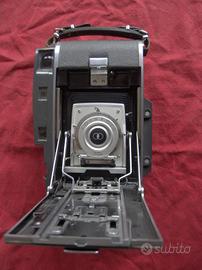 macchina fotografica Polaroid 110A con modifica per utilizzare lastre 4x5 ,o con il dorso 6x9-ottica yashinon 127mm f,4,7-un comodo 4x5 da scattarea mano libera essendo corredata di telemetro perfettamente funzionabile