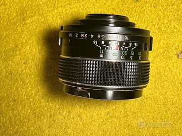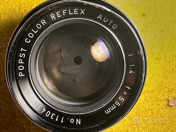 obiettivo Porst color Reflex 55mm f1,4. l'obiettivo è ben conservato, a parte un segno sulla ghiera portafitri come da foto, che non ne impedisce l'utilizzo. Lenti con qualche micrograffio da pulizia, nessun fungo. Meccanica fluida.
