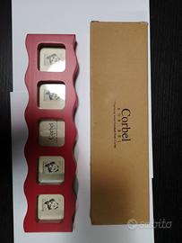 porta foto per 5 foto formato tessera. In legno verniciato di rosso. Prodotto di qualità e non scadente ed economico. Perfettamente nuovo mai usato
