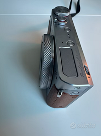 Vendo Canon PowerShot G9 X Mark II in condizioni assolutamente perfette. La fotocamera ha 3 anni, è stata usata pochissimo e non presenta segni di usura (come nuova). Grazie al suo ampio sensore da 1 pollice, scatta foto fantastiche, pur essendo così piccola da stare in qualsiasi tasca. Condizioni: Come nuova, tecnicamente impeccabile. Caratteristiche principali: 20,1 MP, Wi-Fi/Bluetooth per il trasferimento da smartphone, autofocus veloce. Incluso: Fotocamera, batteria originale, caricabatterie e cinturino da polso.