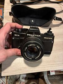 Praktica BCA electronic fotocamera analogica + obiettivo Prakticar 50 mm f/1.8 MC Pentacon, funzionante, ben tenuta, custodia senza coperchio. prezzo non trattabile.