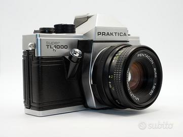 PRAKTICA TL 1000, stupenda fotocamera totalmente meccanica con innesto a vite m42. Fotocamera perftettamente funzionante in ogni sua parte. Come nuova, senza graffi o signi visibili di utilizzo. Fornita con ottima lente originale Pentacon 50 1,8 con lenti pulite e meccanica fluida, caratterizzato da uno dei Bokeh più apprezzati. In alternativa posso fornire altre lenti, o anche solo corpo. . Preferisco consegna a mano, ma posso eventualmente spedire