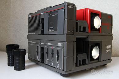 Proiettore Dia EUMIG Sound, Incorpora un registratore magnetico (compact cassette) per la registrazione e la lettura di un commento sonoro, musicale e parlato, e degli impulsi di sincronismo per il cambio delle dia. Sistema di miscelazione sonora automatico. Proiezione di singole dia. Cambio manuale delle dia in marcia avanti. Autofocus. possibilità di accoppiamento diretto con connettore multiplo all'unità "MODULE" per la proiezione in dissolvenza e stereoscopica.