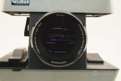 Proiettore diapositive Rollei bipasso (4x4 e 6x6) completo di tutte le dotazioni originali e di custodia. Perfettamente funzionante in tutte le sue parti, ottica perfetta. Gianluca