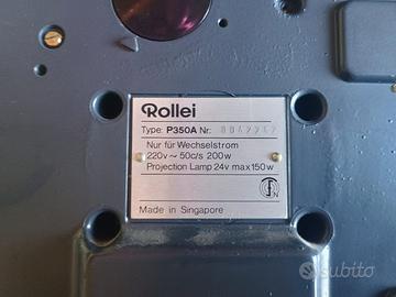 Proiettore per diapositive ROLLEI P350A funzionante, completo di alimentatore e cavo per controllo remoto ma privo di custodia originale.