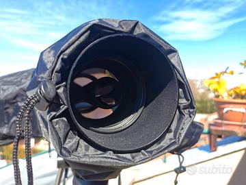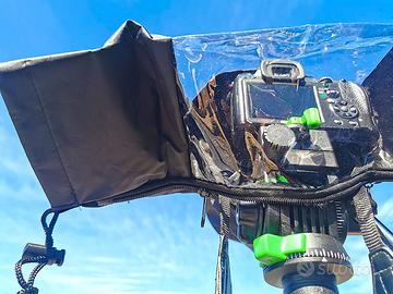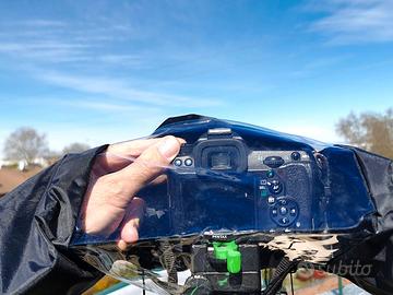Protezione impermeabile per fotocamera, ideale per proteggere la tua attrezzatura fotografica dalle intemperie, consigliata per fotografia naturalistica e di paesaggio. Come nuova (vedi foto) - Materiale totalmente impermeabile e trasparente per la lettura dei parametri della fotocamera - Design con cordoncino per una chiusura sicura sia sul teleobbiettivo che ai polsi -Nastro con velcro interno per un sicuro fissaggio sulla fotocamera - Facile da indossare, rimuovere e manovrare i comandi della reflex o della mirrorless