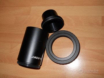 PER FOTO DA TELESCOPIO CON OCULARE D. 31,5 A FOTOCAMERA CANON. IL RACCORDO HA IL FILETTO T2 PER USARE QUALSIASI FOTOCAMERA. QUI E' INCLUSO ANELLO PER CANON. + BARLOX SVBONY 2X CHE PUO' ESSERE INSERITA ALL'INTERNO DEL RACCORDO PER RADDOPPIARE LA FOCALE DEL TELESCOPIO