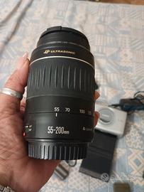 Reflex 300D 2 corpi fotografici+2 obiettivi 18-55 e 55-200, 2 caricabatteria con batteria + stampante foto + 2 borse tracolla segni di usura
