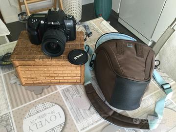 Nikon F60 con Zoom AF Nikkor 28/80 1:3.3 - 5.6 G . Borsa , filtro UV e Parasole in gomma Vega . Reflex in ottimo stato . Funzionante .