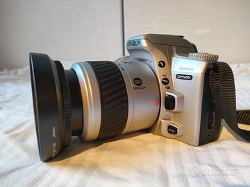 Vendo Reflex analogica Minolta Dynax 404si con autofocus formato 35mm. Monta obiettivo Minolta AF ZOOM 28-80mm 1:3.5-5.6. Con caratteristiche simili in tutto a quelle di una moderna reflex digitale: messa a fuoco automatica (autofocus) o manuale; funzionamento completamente automatico; programmabile (Ritratto, Paesaggio, Macro, Sport e Ritratto Notturno) a priorità di tempi, a priorità di diaframmi o completamente manuale. Flash estraibile integrato nel corpo macchina con funzione anti occhi rossi. Avanzamento e riavvolgimento pellicola motorizzato. 60 €