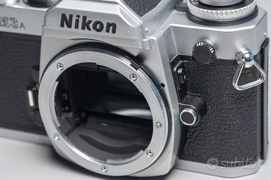 Vendo corpo macchina NIkon FM3a argento in condizioni eccellenti, senza segni d'uso. Reflex a pellicola che non ha bisogni di presentazioni.