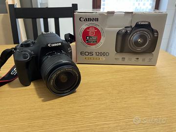 Reflex Canon EOS1200 D in ottime condizioni, usata pochissimo, custodia, cavo interfaccia, caricabatterie inclusi. Tappo copertura obiettivo non originale