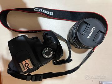 Comprende: corpo macchina con flash integrato, obiettivo originale 18-55mm, scatola originale con istruzioni scritte e cd, cavo di ricarica batteria, cavo per connessione con PC, custodia di qualità (non marca Canon)