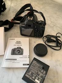 Vendo macchina fotografica reflex Canon EOS 1300D insieme a borsa per portarla e conservarla. Condizioni perfette, usata due volte.