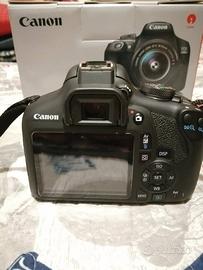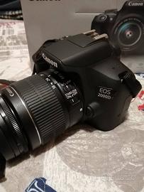 Macchina fotografica reflex Canon eos 2000D, usata veramnte poco, pellicola protettiva sullo schermo, compresa di scatola originale carica batteria, kit filtri da montare sull'obiettivo borsa per il trasporto e cavalletto treppiedi.