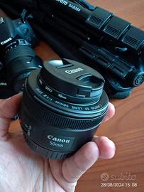 macchina fotografica Canon EOS 800D (con scatola e tutti gli accessori originali tipo caricabatterie cinghia e copri obiettivo) + obiettivo Canon EFS 18-135 mm + obiettivo Canon 50 mm con paraluce.