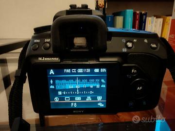 Vendo per inutilizzo fotocamera reflex digitale Sony Alpha A450 con obiettivo kit 18-55 mm 3,5-5,6 SAM in ottime condizioni.