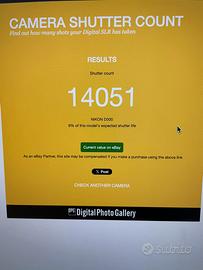 Il corpo ha solo 14.000 scatti, l’obiettivo é un dignitoso mini zoom AF-S DX 18-105 f 3.5-5.6, con scatola manuale e accessori; aggiungo seconda batteria e borsa (se interessati verifico anche cosa mi rimane dell’attrezzatura che ora non uso più e la cedo volentieri)