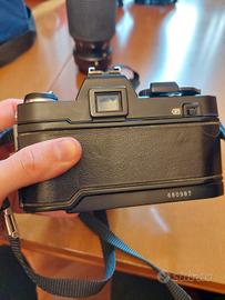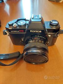 reflex konica vintage con teleobiettivo perfettamente funzionante
