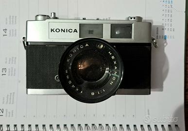 macchina fotografica Konika Auto S 1.6 anno 1967 con custodia in pelle, meno famosa della olympus ma con caratteristiche superiori. autoscatto meccanico temporizzato. made in japan. Obiettivo:Konica Hexanon 45mm f/1.6. estremamente luminoso Esposizione:Automatica con priorità dei tempi o manuale. Otturatore:Copal SVA, 1s - 1/500s + Bulb. a diaframma non a tendina silenziosissimo Messa a fuoco:Manuale a telemetro. Esposimetro:CdS (richiede batteria) robustissima e design iconico.