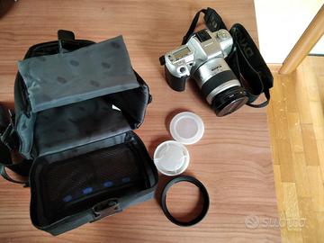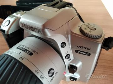 Reflex MINOLTA DYNAX - 404si con sistema di autofocus, flash estraibile integrato nel corpo macchina con funzione anti occhi rossi, avanzamento e riavvolgimento pellicola motorizzato, autoscatto.