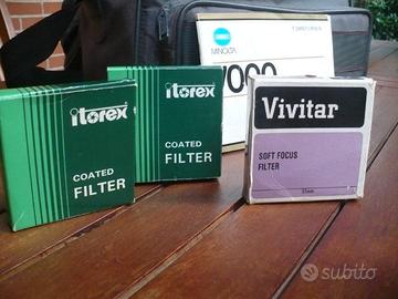 Reflex Minolta 7000 auto focus 35 mm a pellicola con 2 zoom originali Minolta: 35-105 e 70-210. Completa di filtri polarizzatore ecc, borsa.