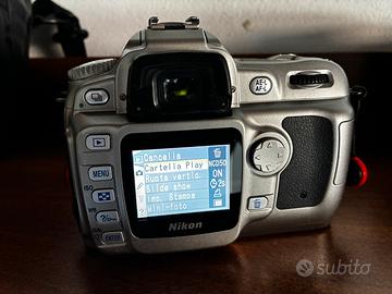 In vendita proveniente da collezione personale Nikon d50 fantastica reflex con sensore aps-c da 6 mpx CCD che permette di ottenere colori e tridimensionalità delle immagini fantastiche! Un ottima reflex sia per chi inizia il proprio percorso fotografico sia per l appassionato che vuole riscoprire il sensore ccd. Monta qualunque lente per Nikon e permette con una piccola somma di entrare nel vero mondo fotografico con una fotocamera vera che abbinata anche a ottiche semplici regala immagini davvero interessanti. L esemplare in vendita e’ nella rara versione silver ed e’ in condizioni eccellenti sia esteticamente che funzionalmente. E’ compresa la batteria originale e il caricatore , tracolla originale e la borsa Nikon presente in foto! Lascio a corredo una scheda sd. Gradito il ritiro a mano, possibile spedizione con corriere tracciato 24h con super imballo al costo di 6€ No perditempo! Resto a disposizione per altre info ma non rispondo a messaggi strani.