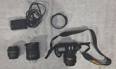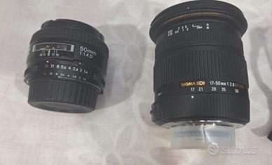 •3 obiettivi di cui: 1 Sigma 17-50mm 1:2.8 molto luminoso, 1 obiettivo fisso originale Nikon 50 mm 1:1.4 D, 1 obiettivo fisso originale Nikon 35mm 1:1.8G tutti molto luminosi! Quello da 50mm e il Sigma sono stati usati davvero pochissimo, per cui sono praticamente pari al nuovo.