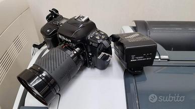 Corpo fotocamera Nikon F-601 AF, con obiettivo 18/135 + Flash Sb 23 Speedlight revisionata un anno fa come nuova batteria, più flash dedicato Nikon SB-22 . Non presenta difetti.