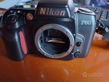 Macchina fotografica non digitale Nikon F60 perfette condizioni con obiettivo grandangolo 35/80 mm Nikon AF Nikkor, valigetta a 3 scomparti Benetton di colore nero e cavaletto Star 700 EF Digital completo di custodia mai usato