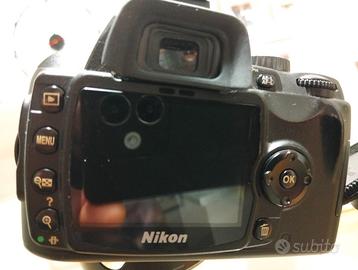 Corpo macchina Nikon D60 ben tenuto completo di sua scatola, cinghia e tappo originali. Corredato di obiettivo Nikon 16-85 mm 3.5 : 5.6 VR in buono stato, senza muffe e graffi, completo di tappo e paraluce petalo originale