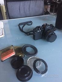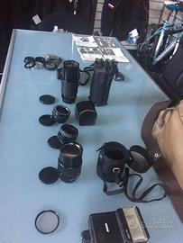 Reflex Revue anni 80, completa di manuale di istruzioni, diversi obiettivi, tele, zoom, per amanti fotografia e del vintage, studenti, appassionati, vendo solo in blocco a 190 €. REGALO borsa tecnica e imbottita, duplicatori di focale, macro, flash (non so se funzionante) lenti, filtri, ecc.